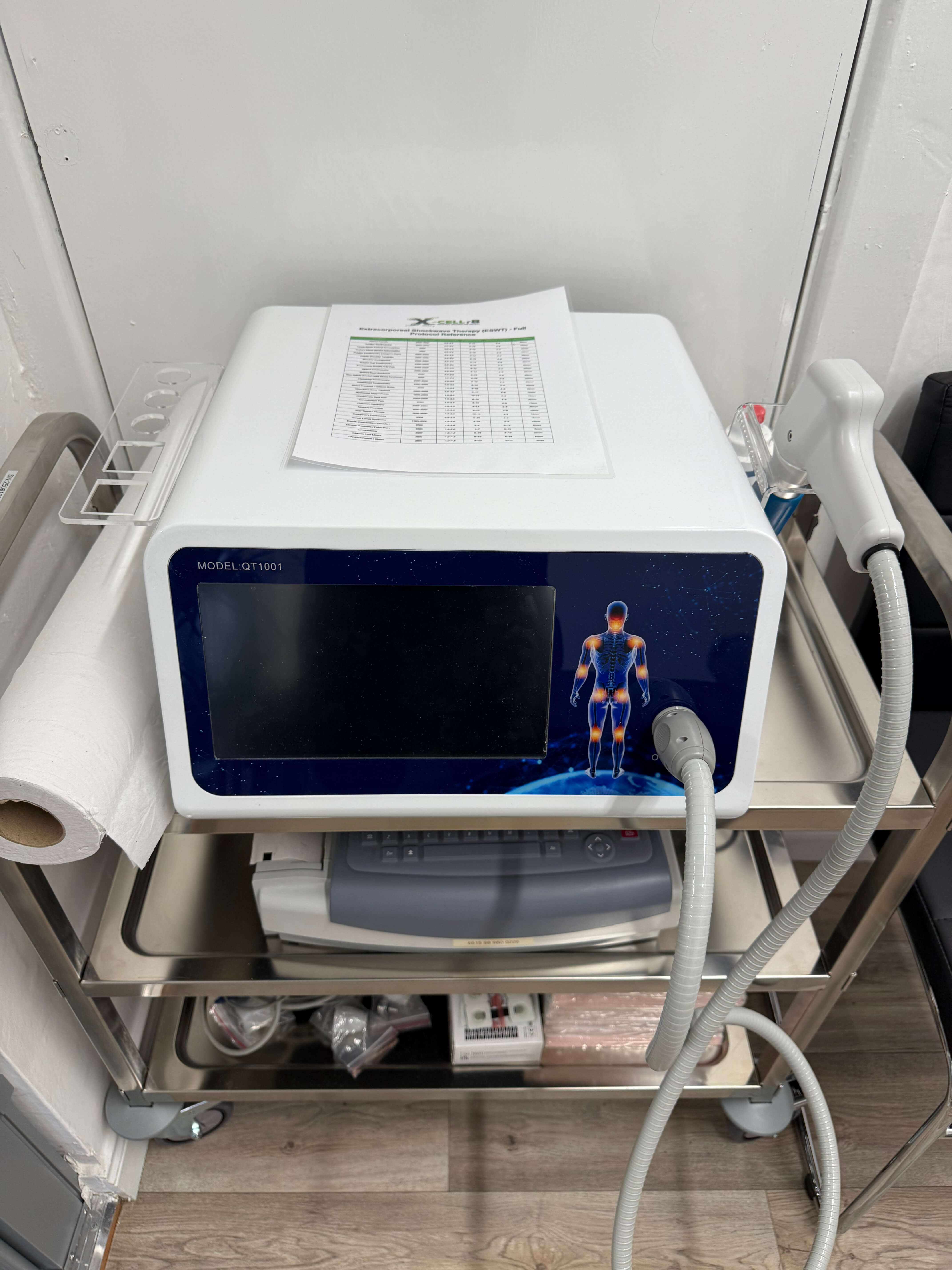 Extracorporeal Shockwave Therapy (ESWT) is a non-invasive treatment that uses high-energy acoustic (sound) waves to stimulate healing in injured tissues. Originally developed to break up kidney stones (lithotripsy), ESWT is now widely used in musculoskeletal medicine, sports rehabilitation, and chronic pain management to promote natural tissue repair and regeneration.